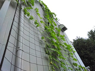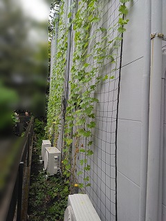 グリーンカーテン(緑のカーテン)は壁面の直射日光を防ぐ単純な冷涼方法です。