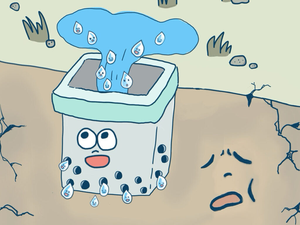 工事や環境学習を行う前に、子どもたちにはオリジナルキャラクターを用いて、土の性質や暗渠管・浸透桝の働きを説明しました。