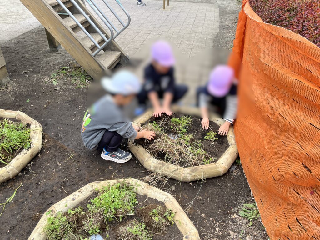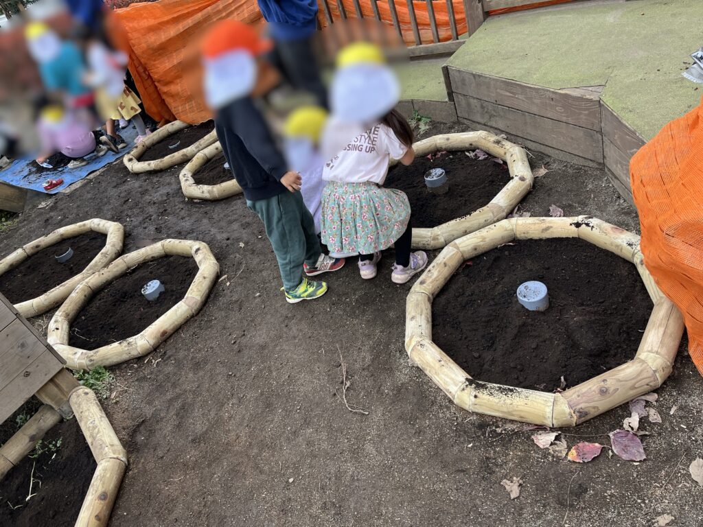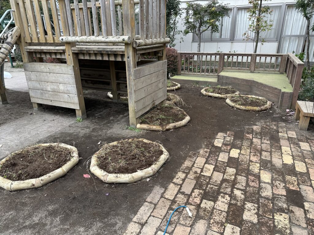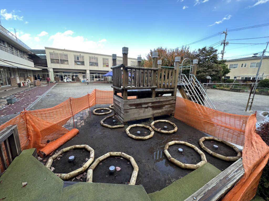 施工の過程に関わることで、園庭は単なる遊び場ではなく、自分たちの手でつくり上げた場所としての思い出が積み重なっていきます。