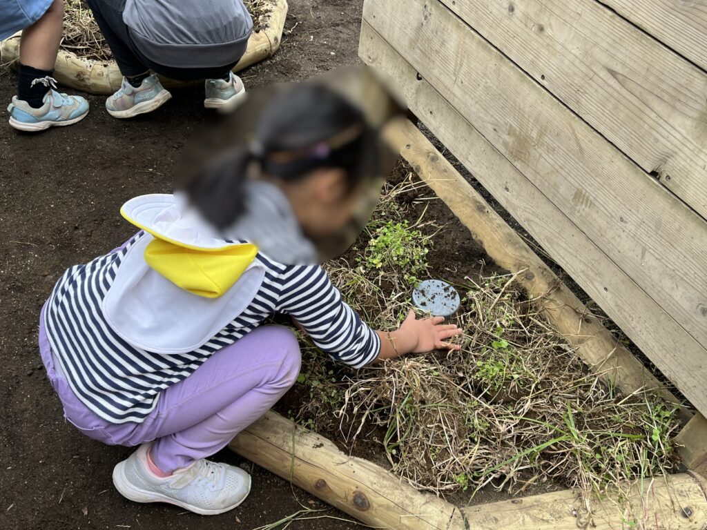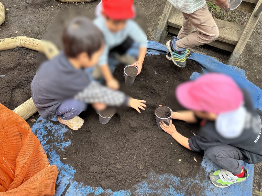 - 園庭の土と黒土を実際に触り、違いを感じ取ることをねらいとしています。