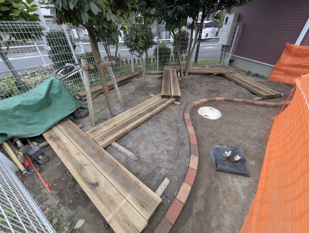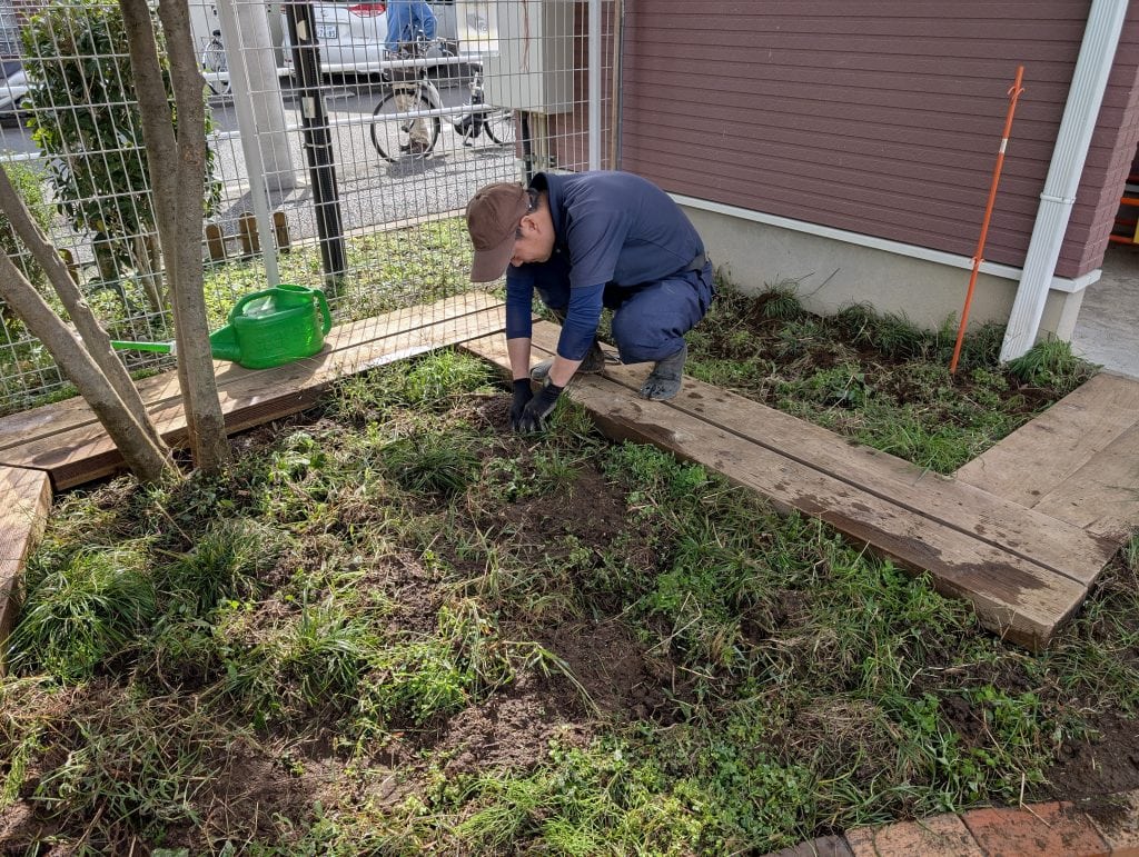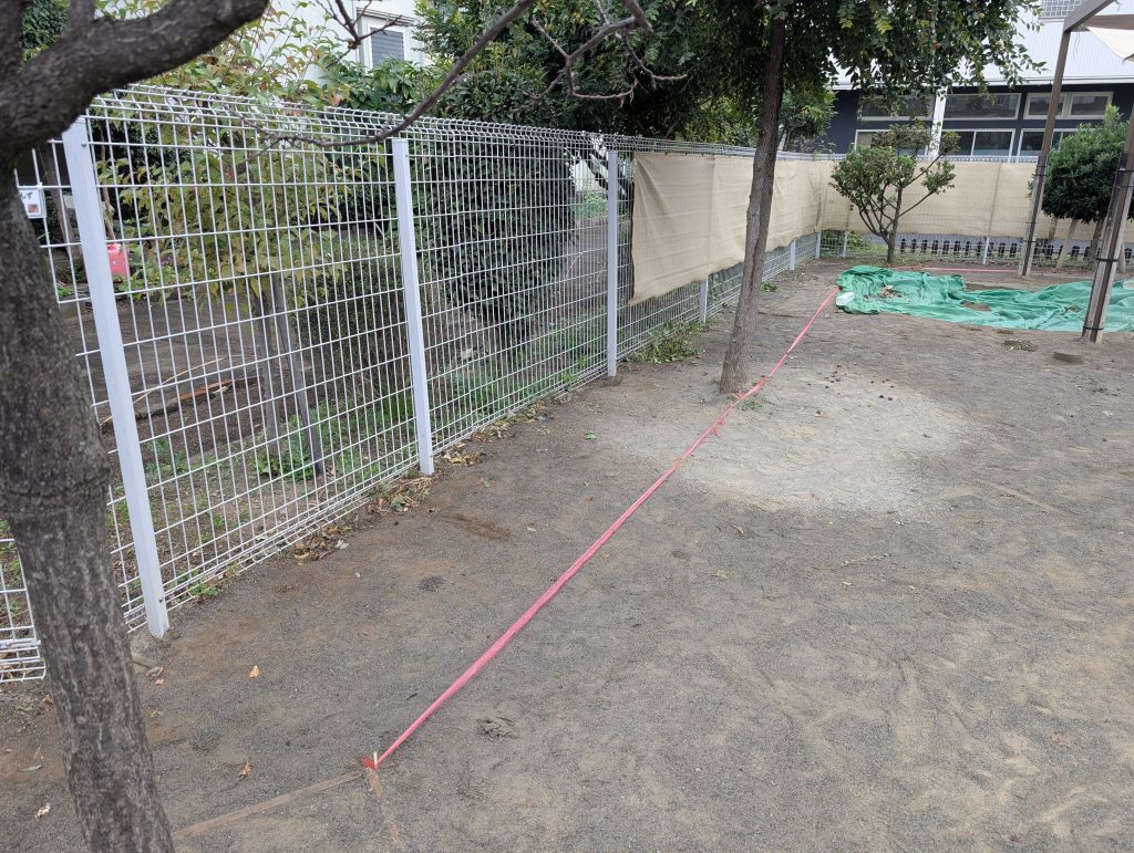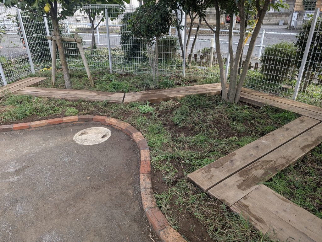 保育園の園庭に、昆虫が生息できる環境として「バッタ広場」を整備しました。