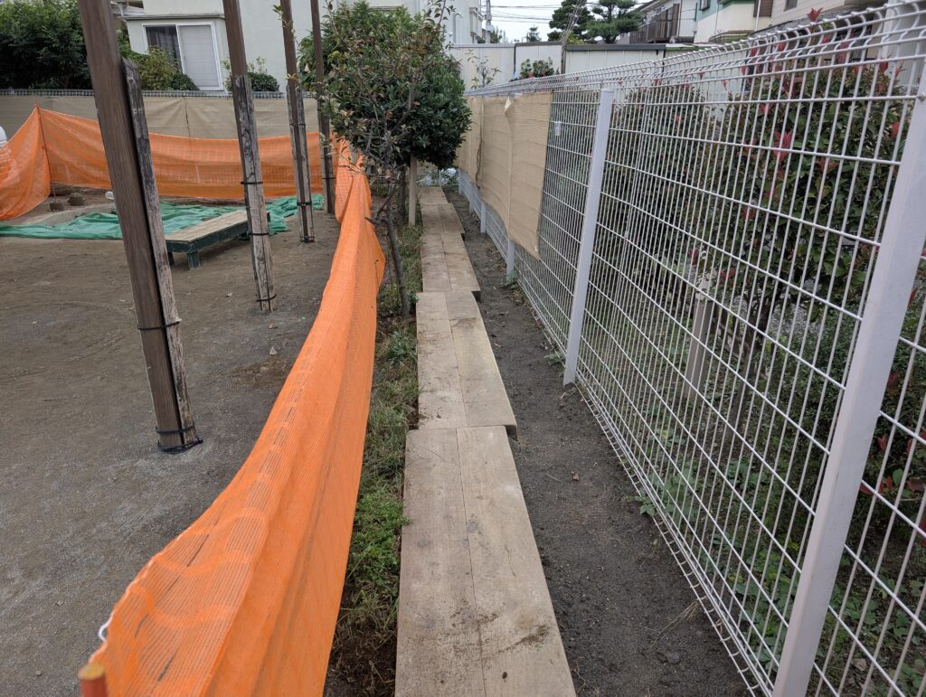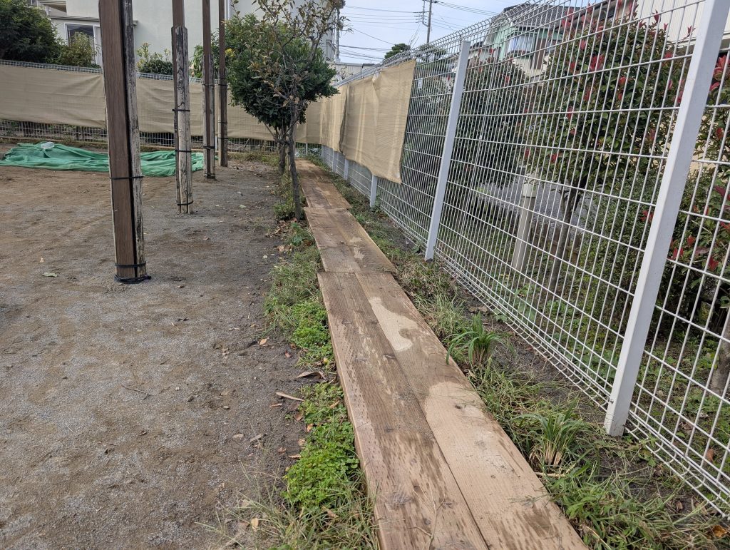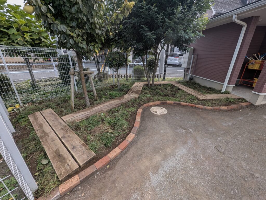 あわせて、園庭の別箇所には、園児が自由に歩き回れる「草の小道」を整備しました。