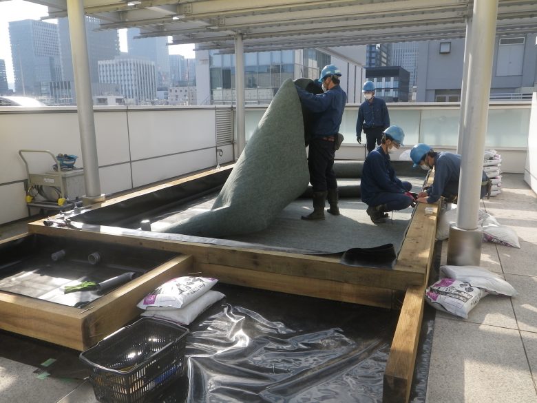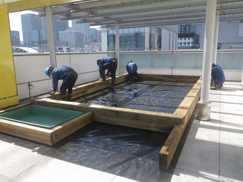 ビルの屋上田んぼの設計・施工・技術提供を行いました。