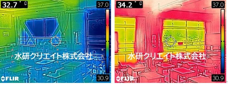 「緑のカーテンのある教室」と「ない教室」で同日ほぼ同時刻に撮影します。