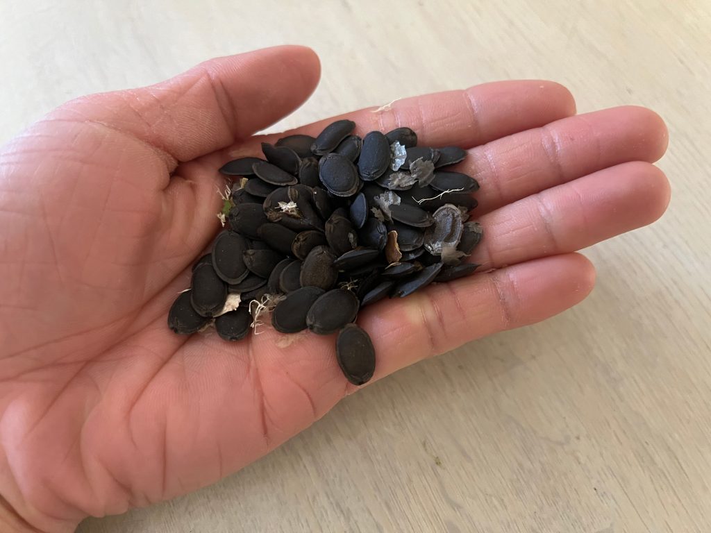 ヘチマと言ったら皆さんは緑色の長い実を思い浮かべることが多いと思います。ヘチマは水分を蓄えながら成長していきあるものだと人の顔の三倍ほどの大きさにもなるほどです。しかし、ヘチマは自分たちの子孫を残すためタネを乾燥させ飛散しやすくさせます。そのためヘチマという植物は果実に与える水の供給をストップするのです。しばらくすればカラカラに枯れたヘチマが出来上がります。へちまのたわしはその乾燥した果実を利用して作られるのです。子供達にはそのヘチマの皮むきをしてもらいました。皮をむき終わったらヘチマ一本分に含まれる種の数も子供たちに数えてもらいました。ある学校では合計700粒ほど入っていたヘチマもありました。ヘチマから出てきた種に興味を示したり、その種を持って帰って育てると言ってくれる子がいました。