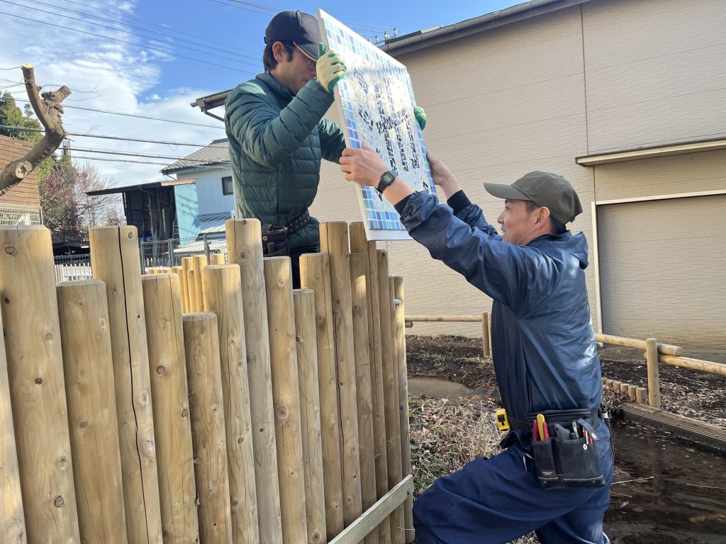 【児童と一緒に施工】校庭ビオトープとモザイクタイルプ看板づくり(むさしの学園小学校/東京都府中市)