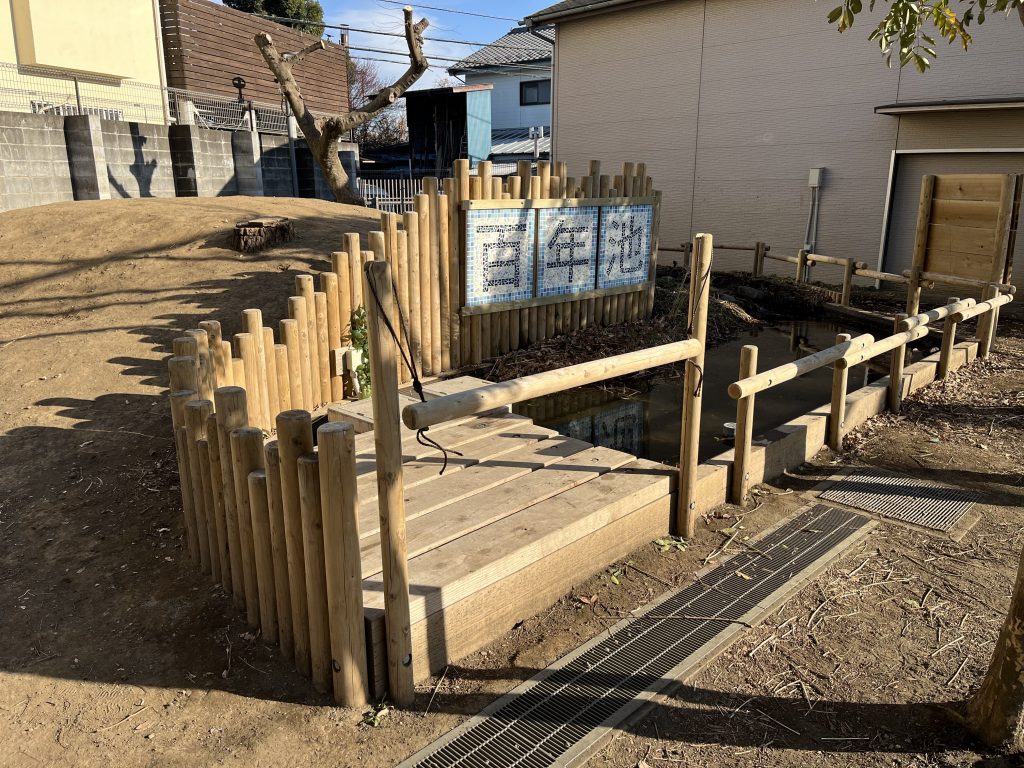 子どもたちの公募により、ビオトープは「百年池」という名前がつきました。