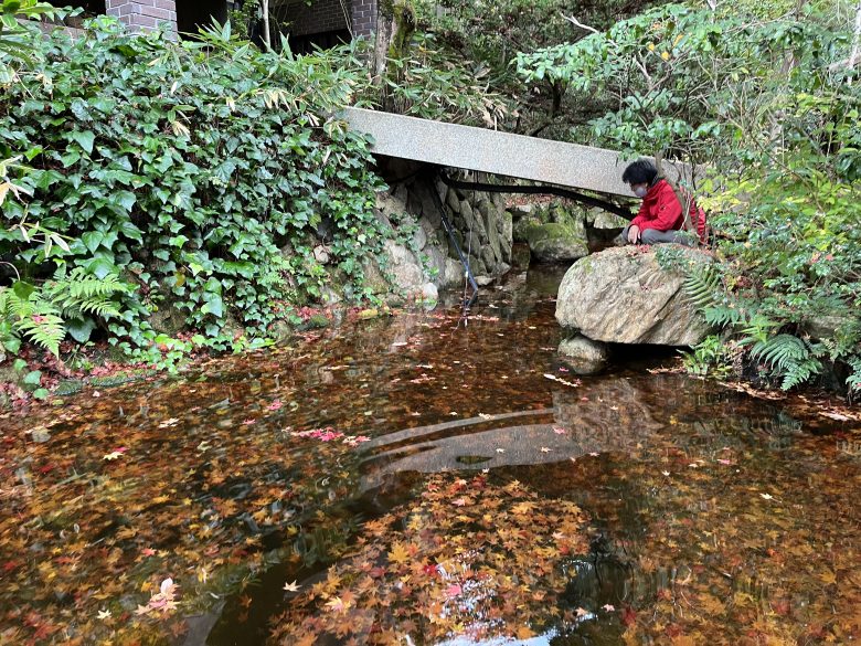 蓄積された落ち葉は水中で腐敗し嫌気的な空間にしてしまうため、水中生物に悪影響がでます。落葉の樹木が近くにあるビオトープでは定期的に浚渫(泥さらい)をお勧めしています。
