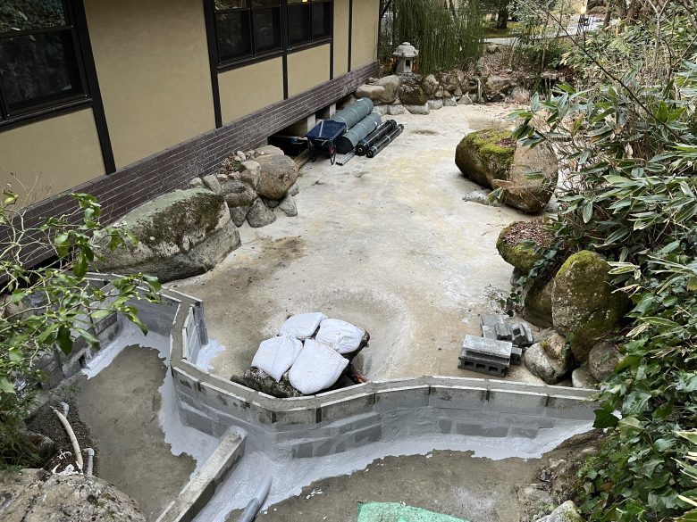 「池をビオトープ化して地域の生きものを呼び込みたい。滝のような流れ落ちる高低差がほしい」というご要望をいただきました。