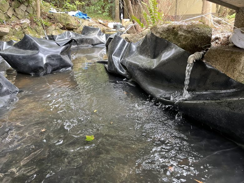 弊社の使用する防水シートは耐久性に優れ、蛇行部分なども貼り合わせ技術を用いて自在に施工することができるため、より自然に近い形を作り出すことができます。