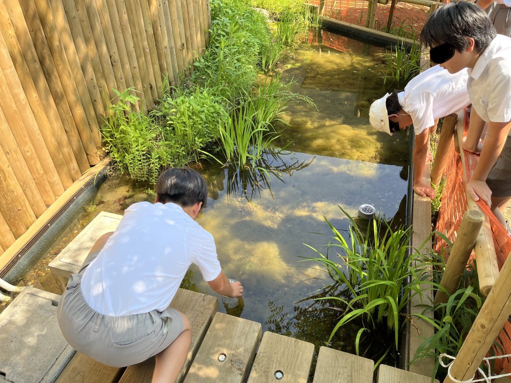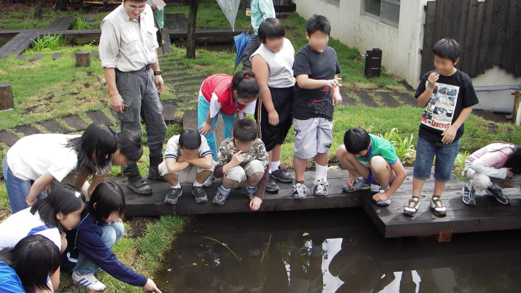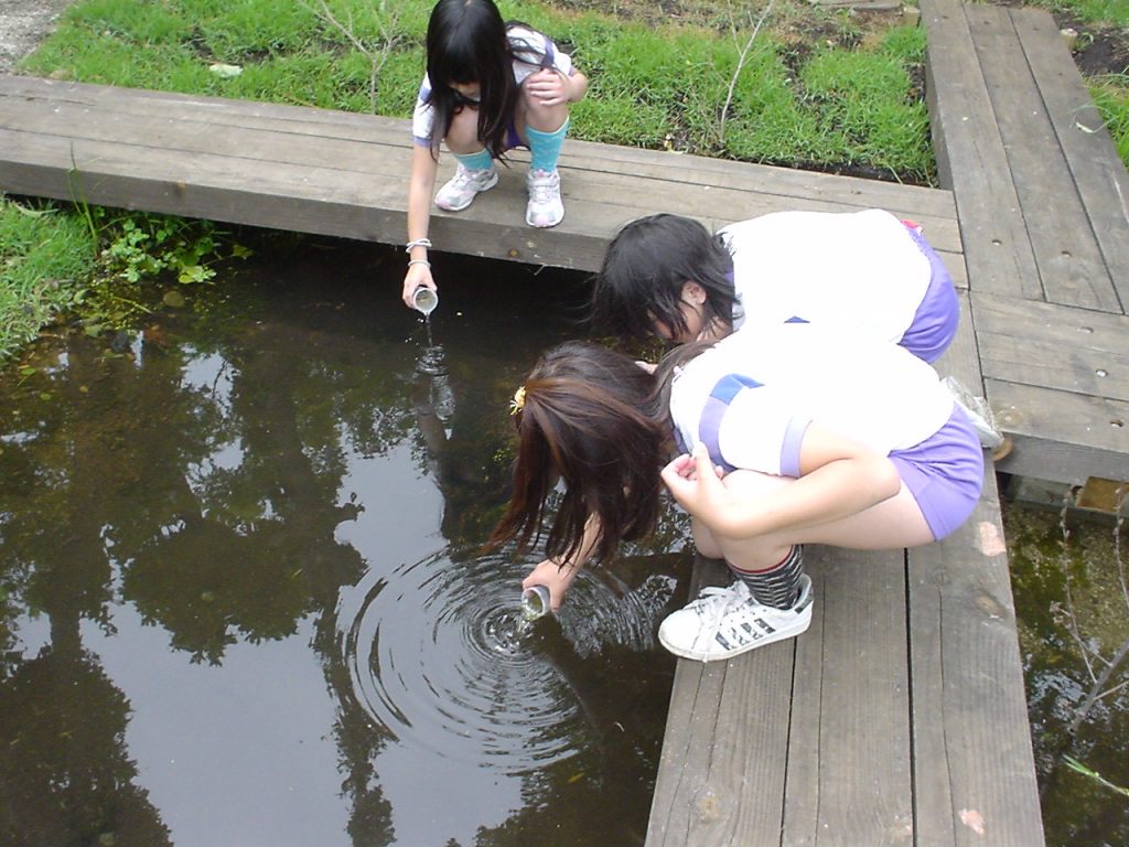 観察した生きものは、元の場所にそっと戻します。生きものが暮らす場所は、それぞれにちょうどよい環境があります。元の場所に戻してあげることで、生きものが安心してすごせる環境を守ることにつながります。このようなビオトープを使う上でのルール周知に努めます。