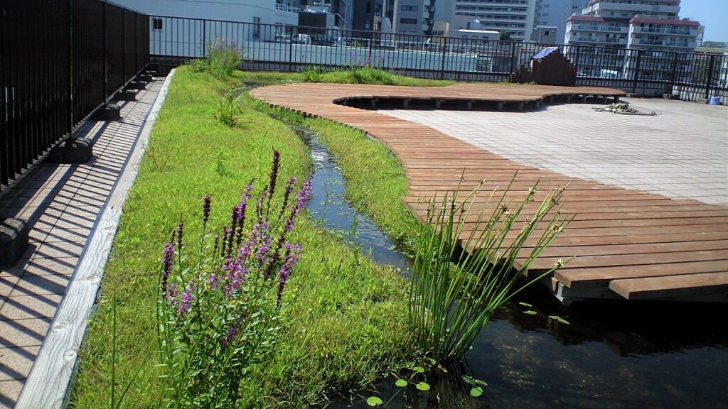そこで重要な役割を果たすのがビオトープです。ビオトープは、都市の中に新たに設けられる自然空間であり、生きものが安全に立ち寄れる「拠点(ハブ)」として機能します。具体的には、休息できる場所、外敵から身を隠せる環境、食べ物や栄養源を得られる空間を提供することで、生きものにとっての中継地点となります。
