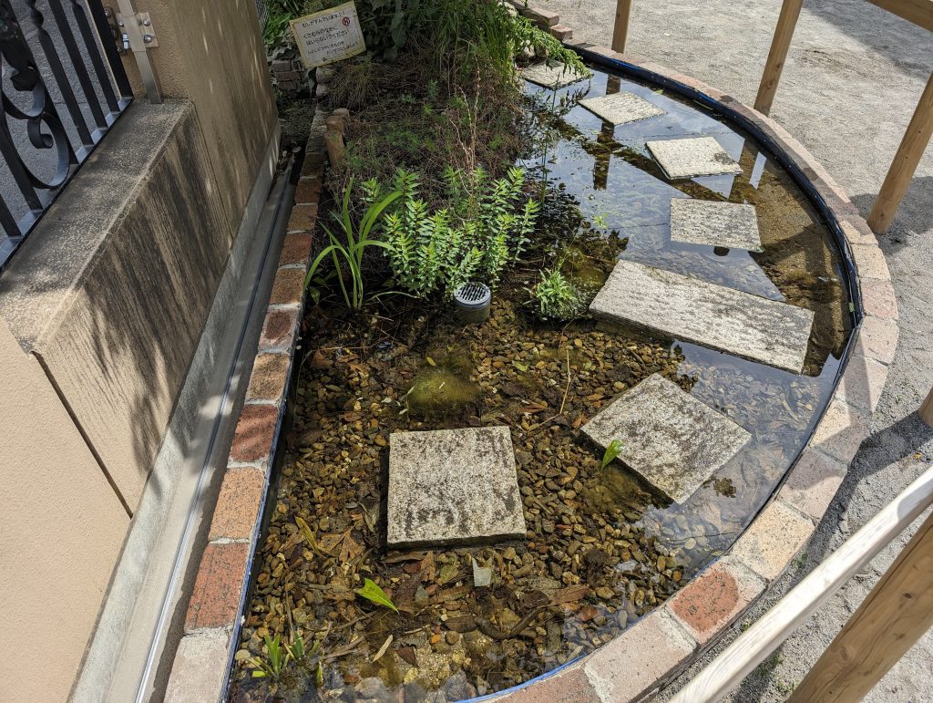 当社では、薬剤に頼るのではなく、在来の生きものの働きを活かすことでボウフラ(蚊の幼虫)の発生を抑えています。