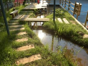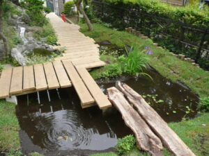 見切り材、デッキ、太陽光発電を利用した細流の設置、マウンドのデザイン、 各種陸生・水生植物の植栽箇所まで一貫して提案いたします。