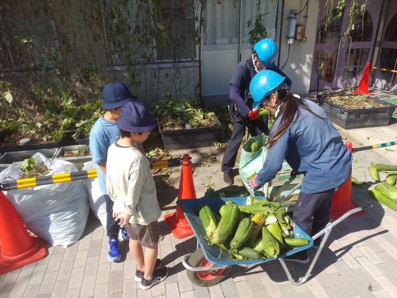 ウリ科植物を使った“実がなるカーテン”は、ヒートアイランド現象の緩和だけでなく、育てる楽しさを子どもたちに届けます。