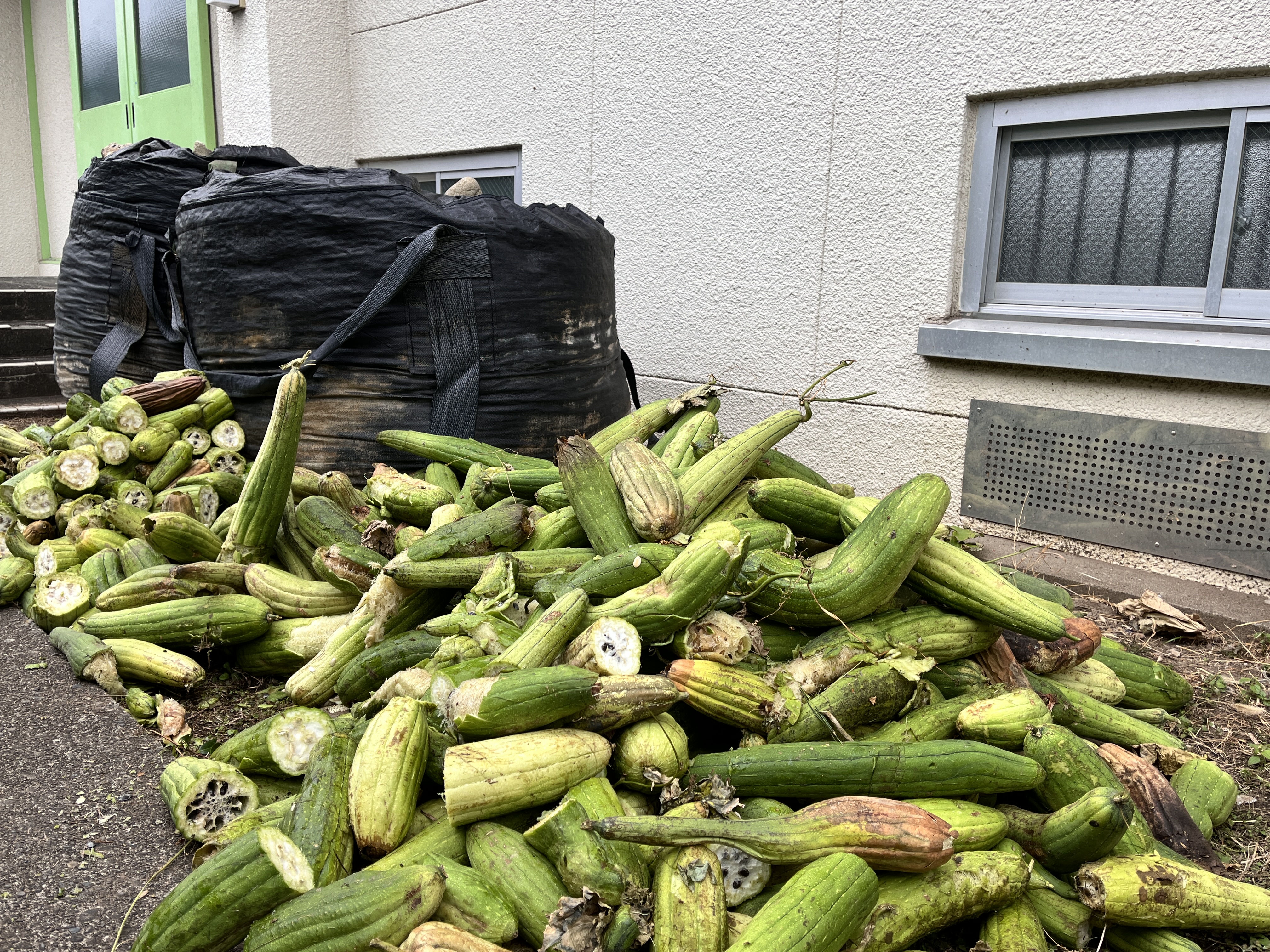 収穫したヘチマの実は、毎年ミミズコンポストへ投入し堆肥へ変化