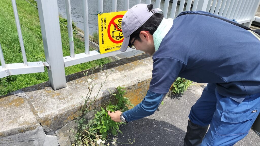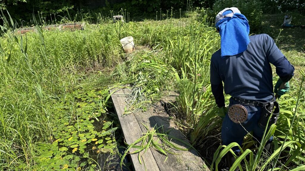 当社では化学物質を使用しない方法で外来植物を除去しています。